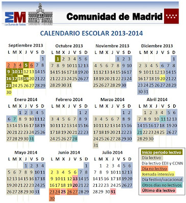 En el caso de Educación Infantil y Primaria, el curso escolar comienza el 9 de Septiembre y el último día lectivo será el 20 de Junio de 2014