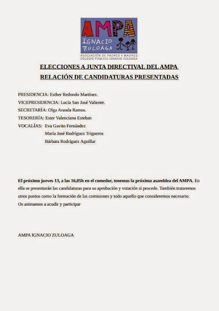 CANDIDATURAS JUNTA DIRECTIVA AMPA