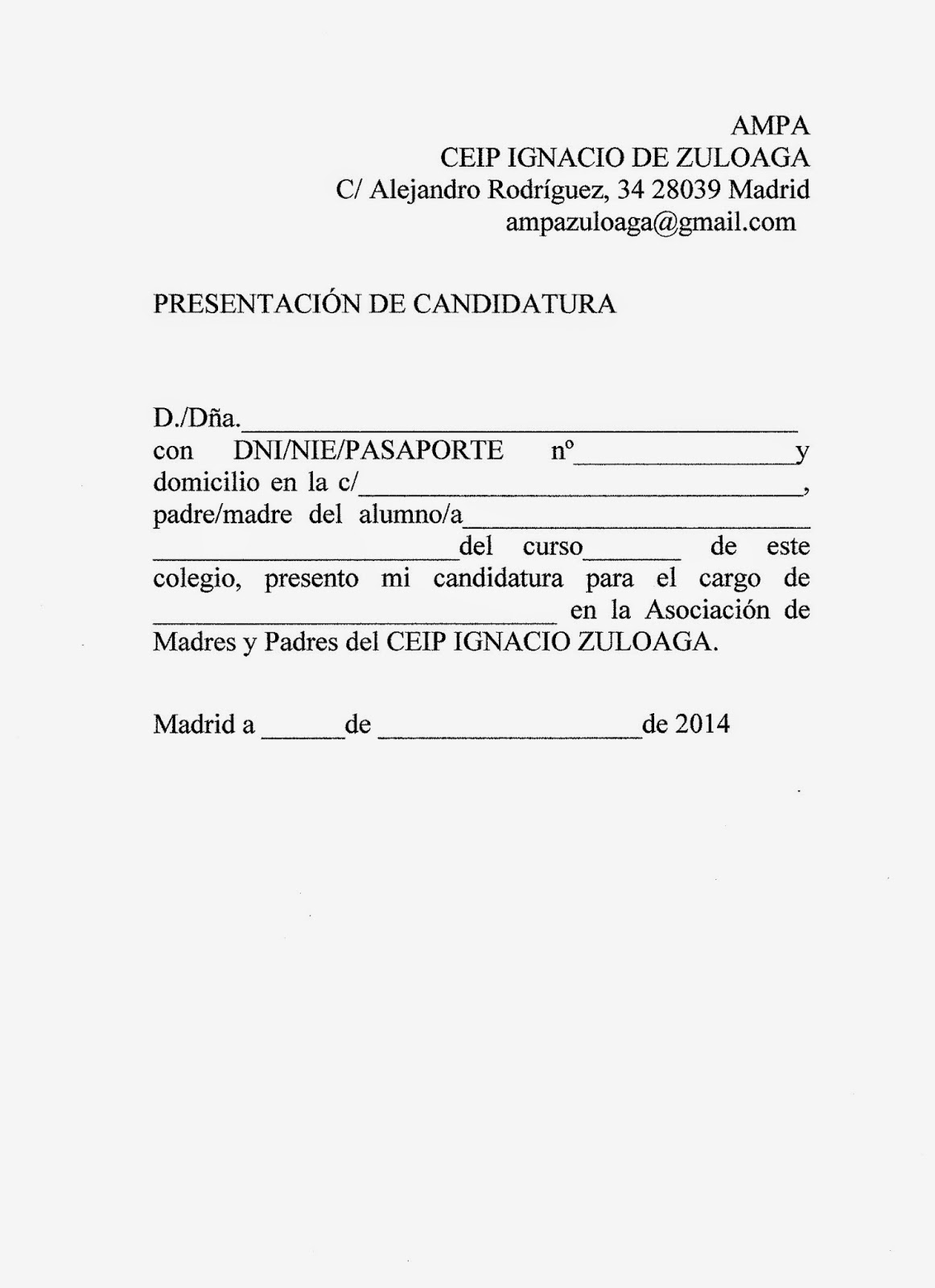 Los interesados en presentar candidaturas para formar parte de dicha junta, deberán hacernos llegar sus datos en el buzón de la AMPA antes del 9 de noviembre rellenando el archivo adjunto: