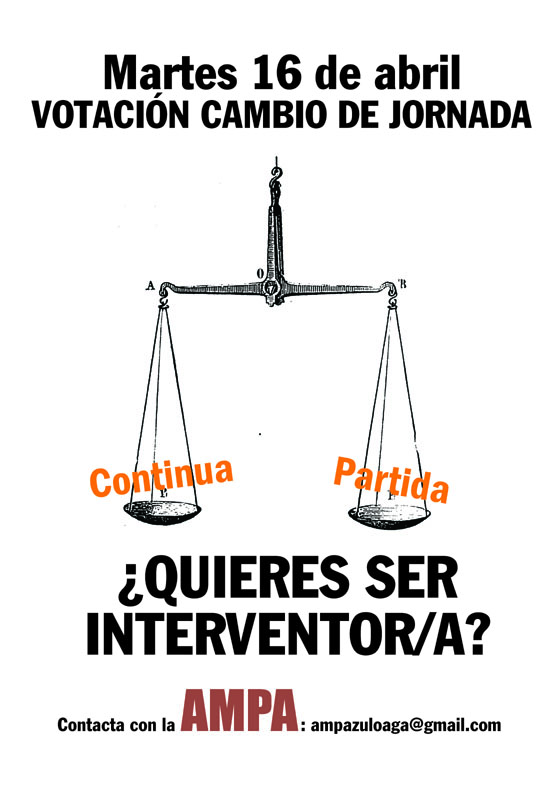 Hola, como os comentamos ayer en un correo existe la posibilidad para quien esté interesado de ser «interventor» en la votación de mañana. Puede ser por turnos, quien tenga un rato y quiera, puede escribir un mail a ampazuloaga@gmail.com