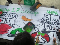 El AMPA ha apoyado las movilizaciones haciendo un encierro, organizando una «guardería» para los niños cuyos padres no querían que fueran al cole el día de la huelga, y ha ido como AMPA a la manifestación convocada contra la LOMCE y los recortes.