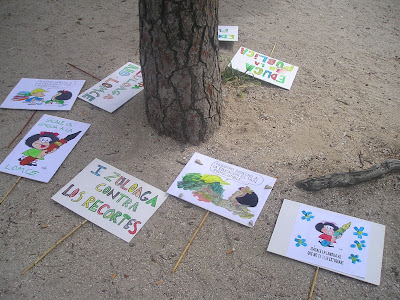 Ayer, día 9, nos reunimos el grupo de padres y madres que íbamos a montar la «guardería» por la mañana en la Dehesa de la Villa. Estuvimos con 14 niños, a los que se sumaron más a lo largo de la mañana. Aprovechamos para pintar las pancartas que llevamos por la tarde a la manifestación.